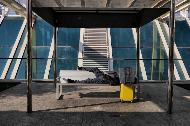 La série prend le contre-pied de la fébrilité urbaine, caractérisée par l’agitation et l’intranquillité permanentes, en pointant ces moments particuliers où les corps se figent et les esprits s’évadent.